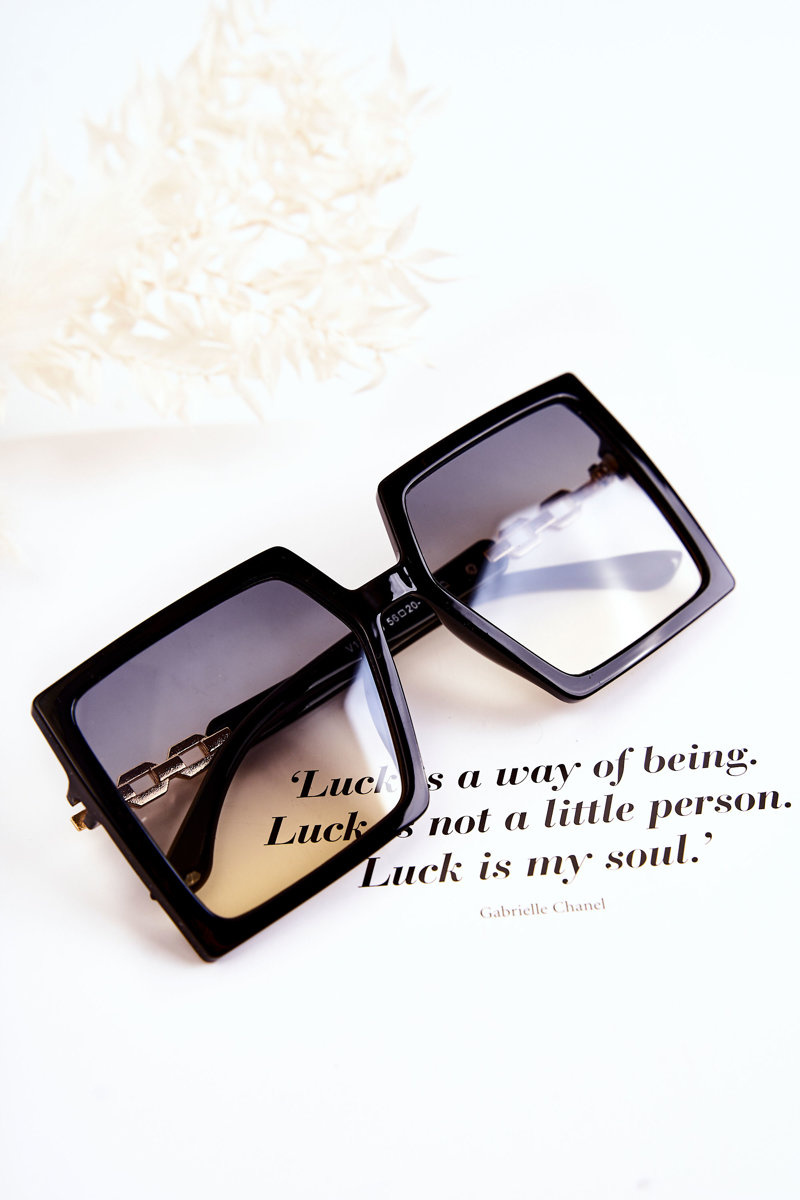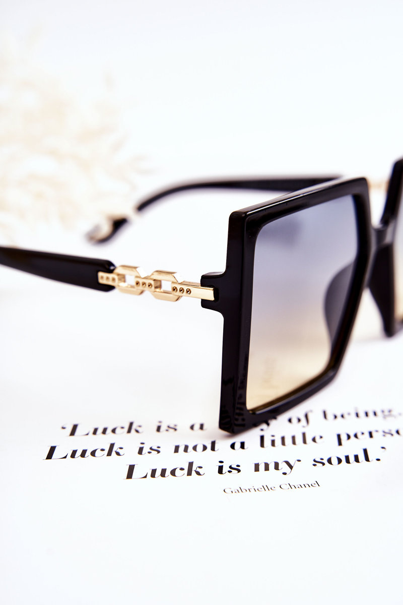 Fashionable sunglasses are great for many situations! Not only in the summer season, but also in the winter season, when the sun's rays reflect off the snow. Square model with thin lens frames. Plastic bridge. The temple is made of plastic with a decorative golden element. Manufacturer's information: glasses absorb harmful UV rays, category 2.