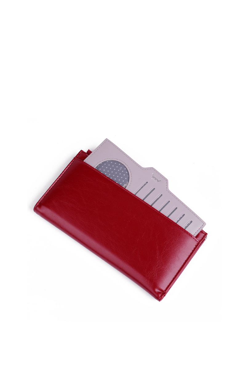 This wallet will delight many lovers of unique fashion accessories! The elegant wallet is made of eco leather. The front features an emblem with a decorative zirconia. On the back there is an open pocket with a place for a photo in a different colour than that of the wallet. The fastened part also contains a place for business cards or ID card and a photo. A zipped pocket holds coins.