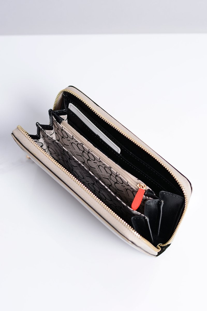 The complement to any woman's styling is not only a handbag and shoes but also a well-chosen wallet. Wallets of the renowned company NOBO are appreciated by all women. The presented model is finished with high quality varnished ecological leather. The wallet is fastened with a single gold zipper. Inside there are 8 card pockets, 1 large zippered compartment for coins and 3 additional compartments for other documents.