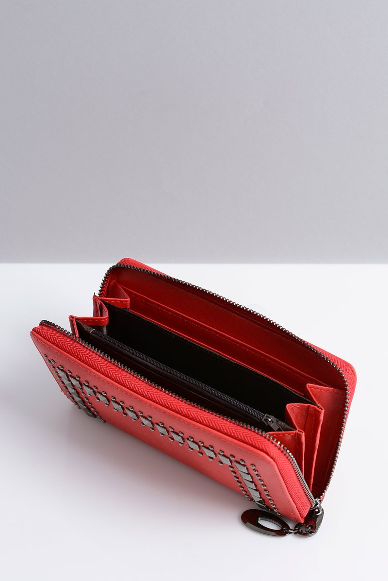 Large Women's Red Wallet with Studs