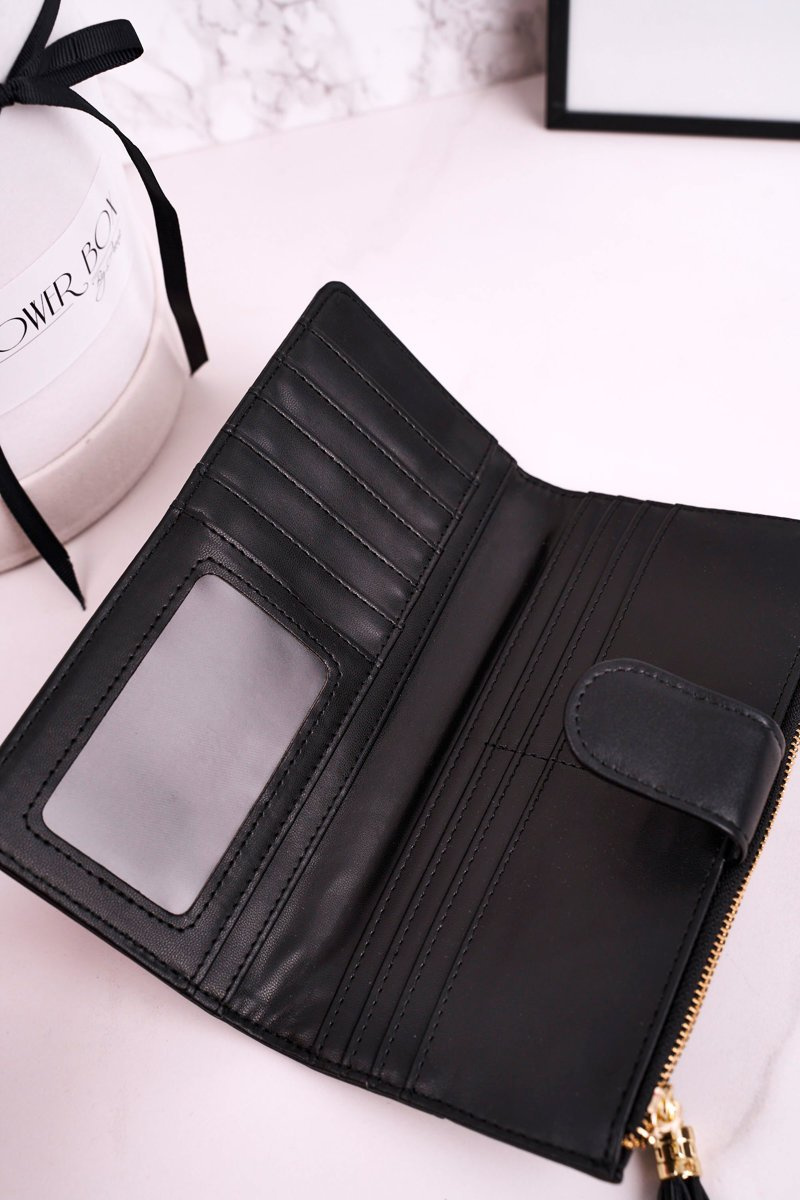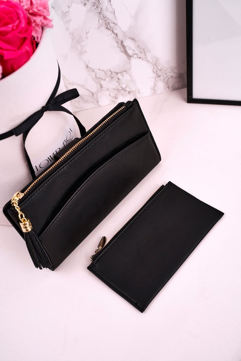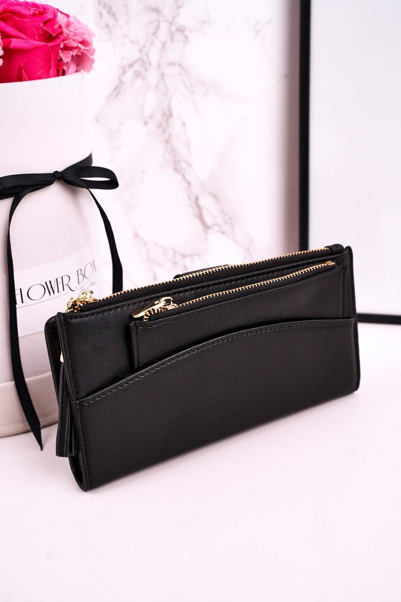 Large Women's Wallet With An Extra Purse And Fringes Black