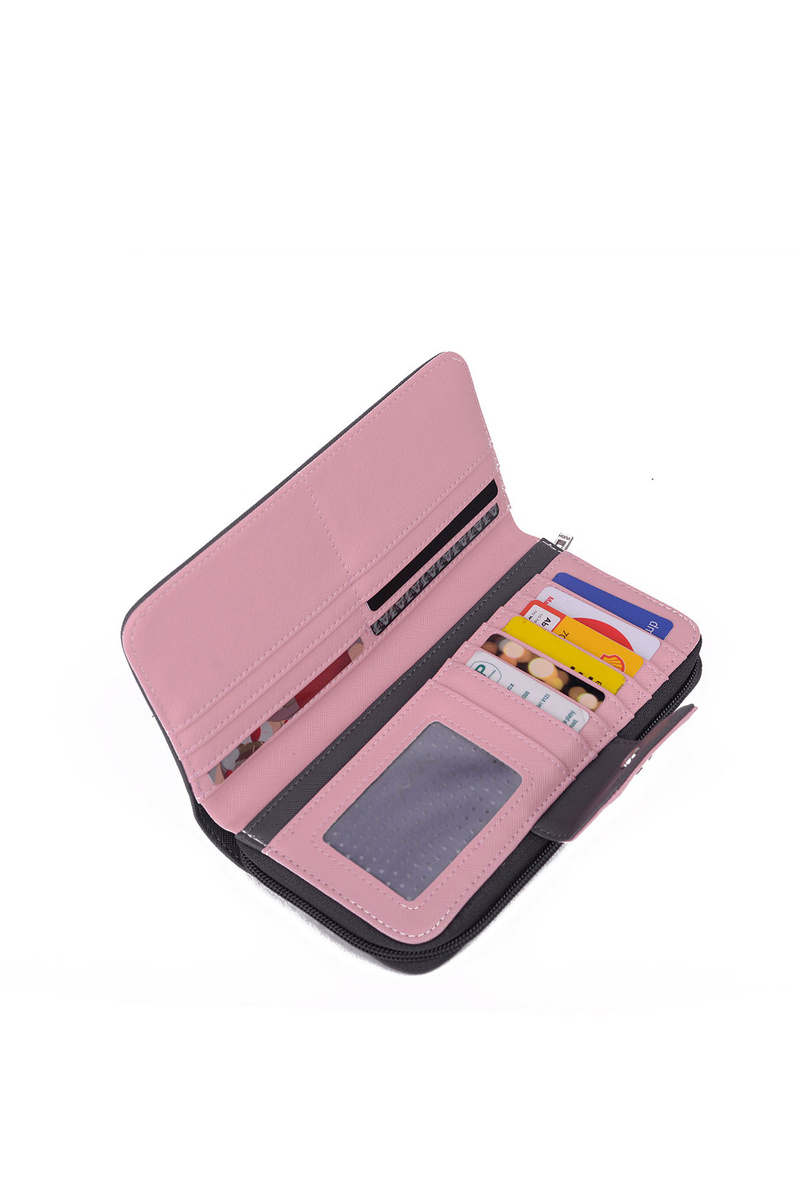 Excellent wallet with a zip and fastening. It has several smaller open pockets for ID or business cards, among others. Zipped compartment is divided into two smaller ones where you can put notes. There is also a zipped pocket for coins. The wallet is made of eco leather and features a logo and emblem on the front.