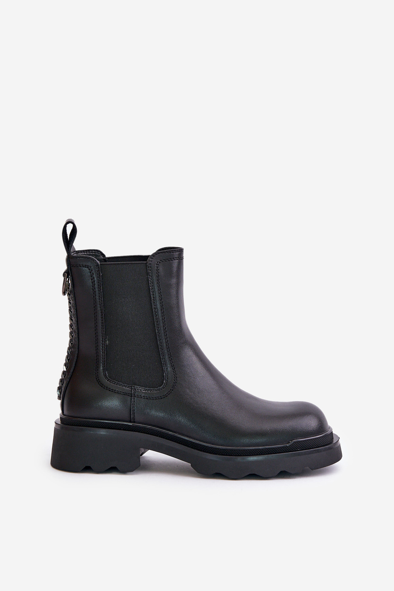Leather Ankle Boots With Decorative Chain Insulated D&A JC42-86 Black