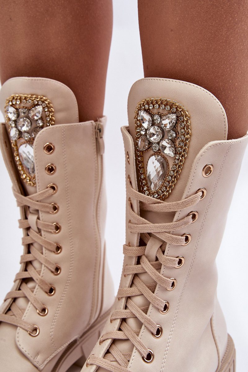 Leather Ankle Boots With Jewelry Decoration Beige Marx