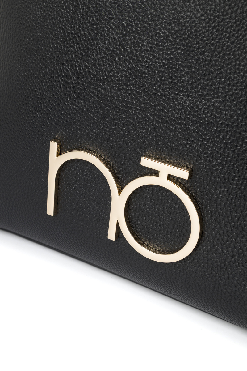 The Nobo brand bag is made of high-quality eco-leather. It has the brand logo on the front and a zipper pocket on the back. Additionally, the bag has a patterned, detachable belt. The main compartment is closed with a zipper. Inside there are two open pockets and one zippered pocket. This model is spacious enough to accommodate A4 format documents.