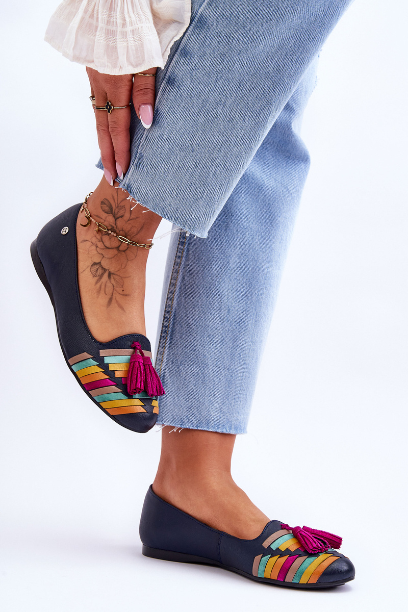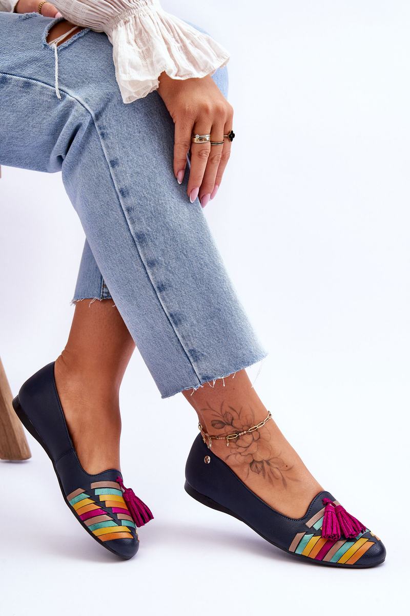 Leather Ballerinas With Fringes Maciejka 04016-17 Navy