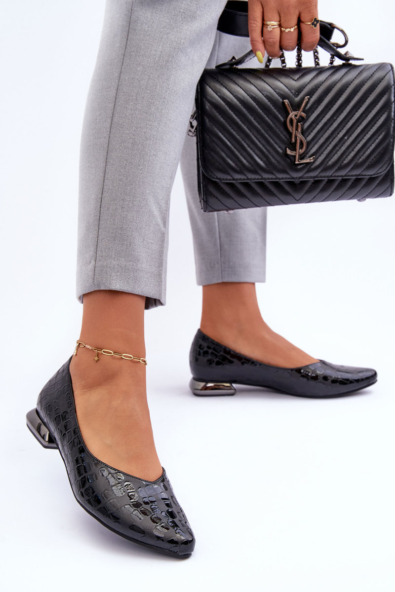 Elegant ballerinas have been made from eco leather. These shoes are set on a flat heel. The profiled insole made of natural leather will provide comfortable use of the shoes. The almond-shaped toe will optically slim the legs. Ballerinas can be used for many stylizations with both dresses, skirts and trousers. The toe in this shoe is stiffened. When choosing a size, please refer to the size chart.