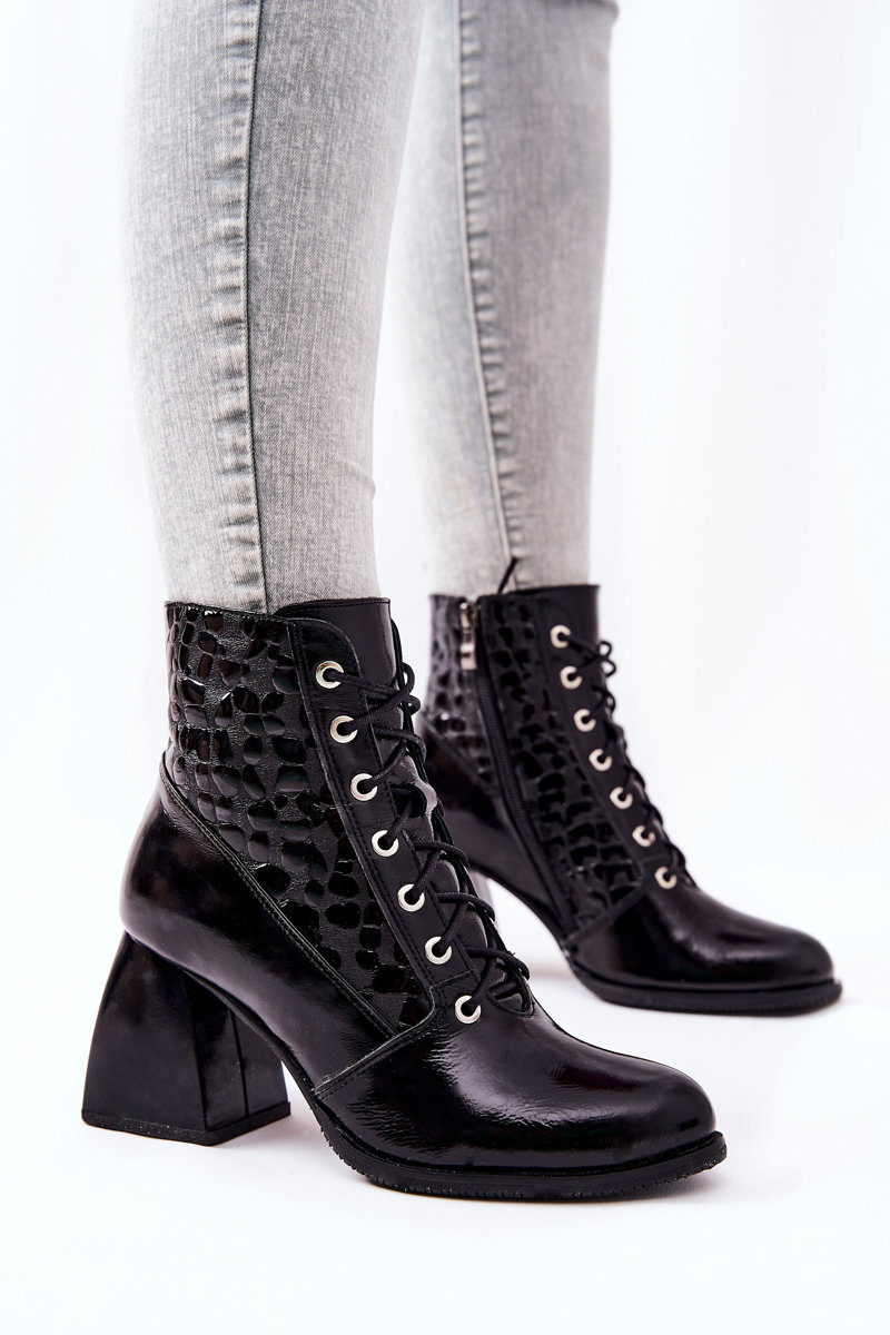 Great boots made of natural leather should be yours! They have a wide heel. A unique model with a zipped kidney that can be pulled down thanks to an adjustable strap fastened with a buckle. Fashion tied and fastened with a zipper. In the middle, it has an insulation in the form of a footwear blanket and a stiff heel counter.