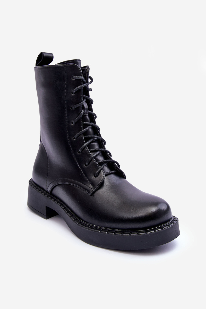 Classic ankle boots have been made from eco leather. Set on a flat heel and platform. Fastened on the side of the upper with a zipper and additionally laced. The toe of this shoe is stiffened. Insulated with a shoe insole. Great model for autumn and winter styling! When choosing a size, please refer to the size chart.