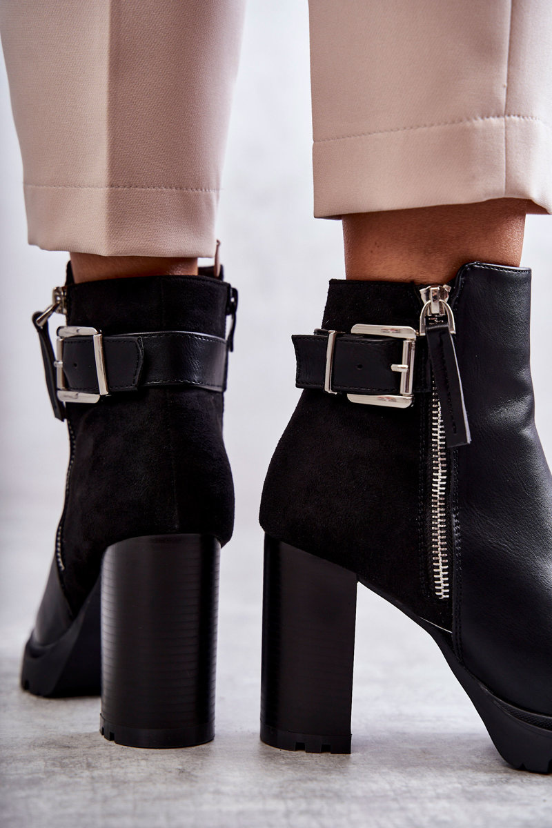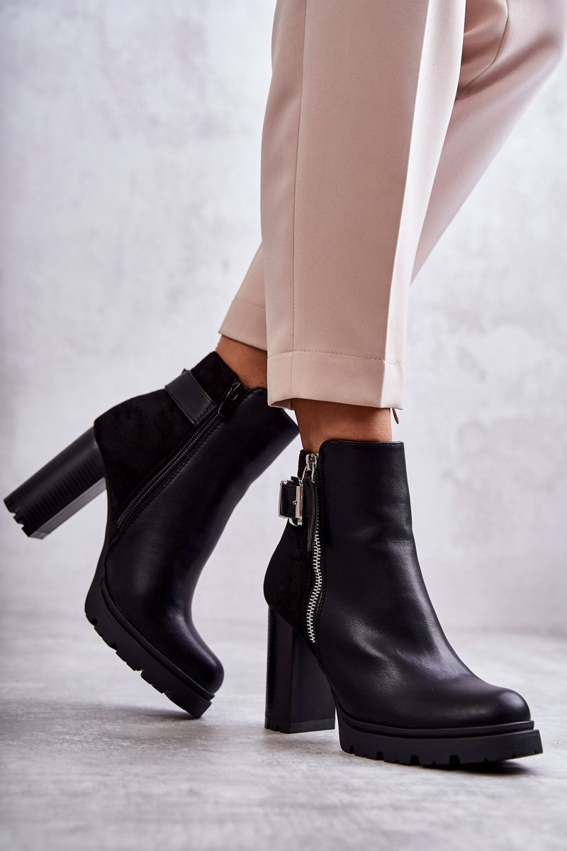 Leather Boots On High Heels With A Decorative Zipper Black Rosita