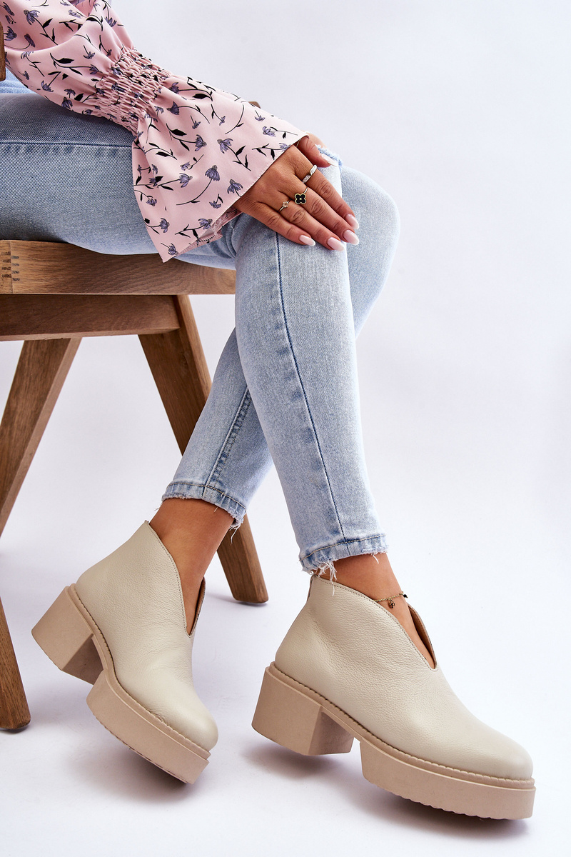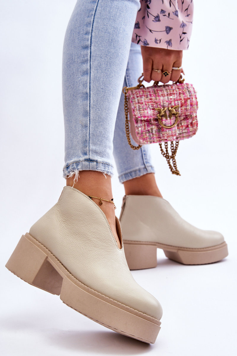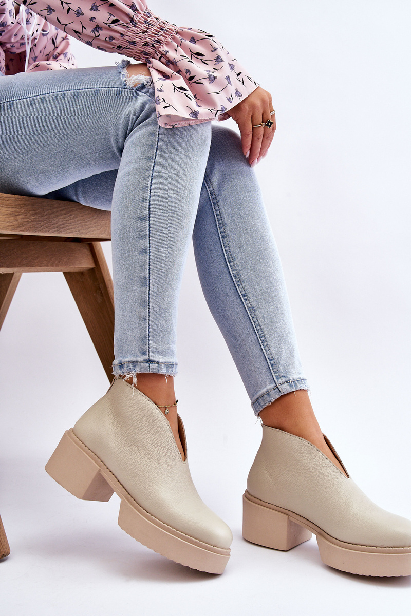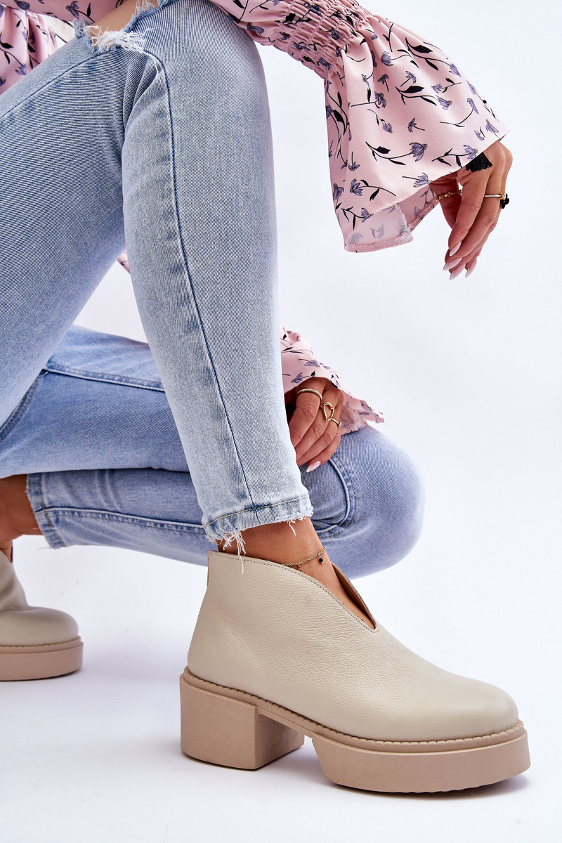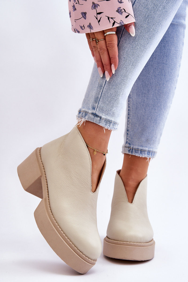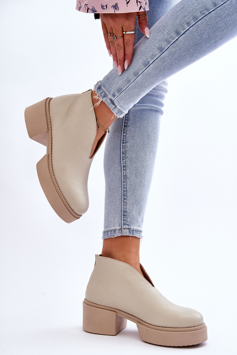 Leather Boots On Massive Heels Nicole 2795/054 Light Beige