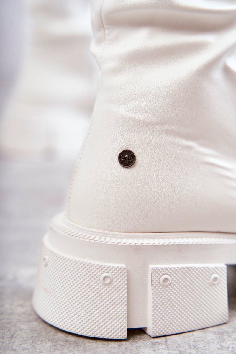 Leather Boots Over the knee On Flat Heel GOE KK2N4022 White
