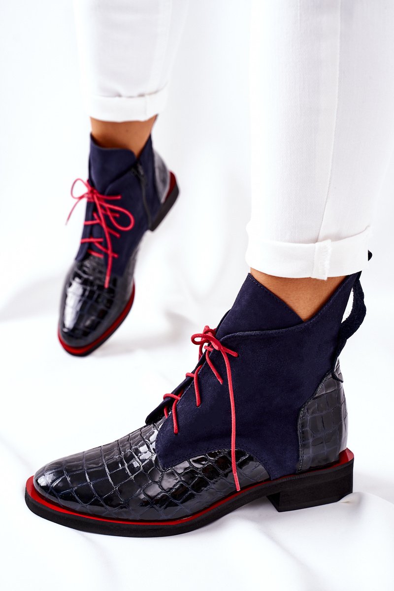 Leather Boots With A Aligator Pattern Navy Blue Bruselle