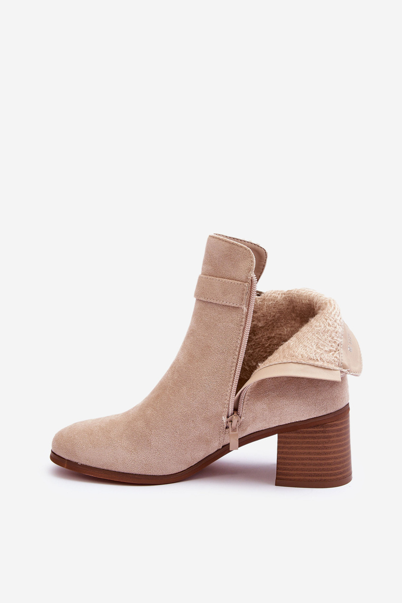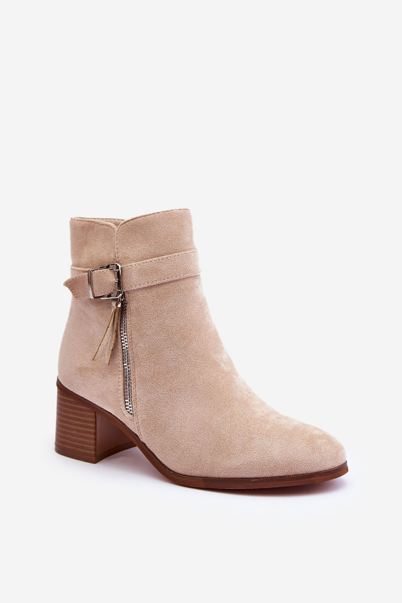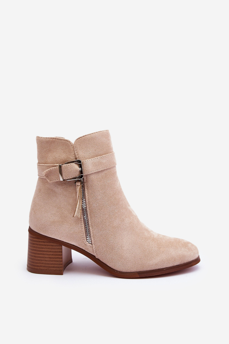 Women's ankle boots made of soft eco suede. Fastened with a zipper. The upper is decorated with a thin strap with a buckle and an additional zipper. The toe of this shoe is stiffened. The interior is padded with a shoe fur. Perfect for many styles! Be sure to check out the other models of ankle boots available in our offer. When choosing a size, please refer to the size chart.