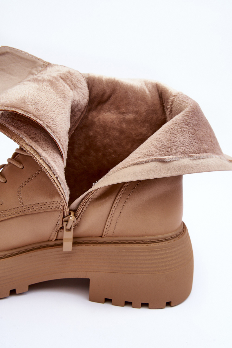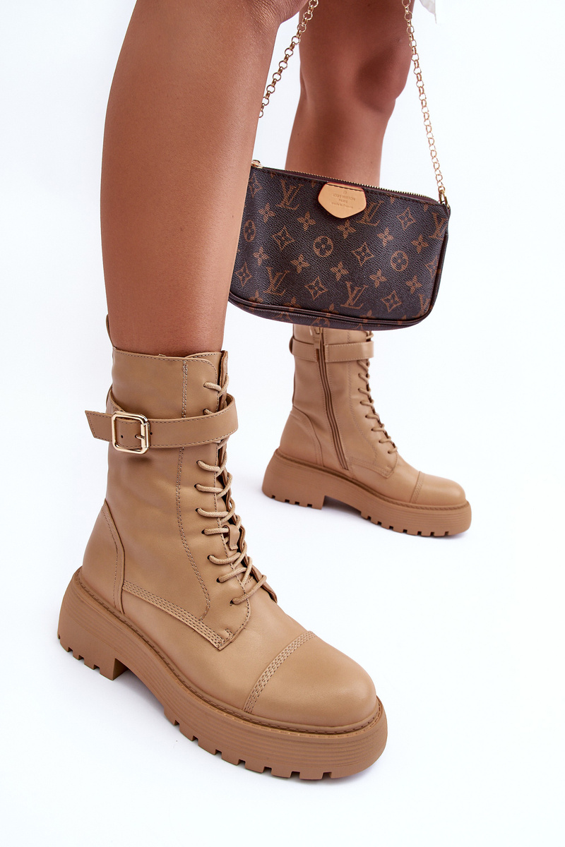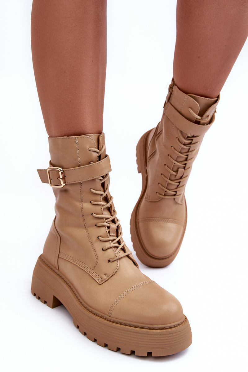 Leather Boots with Flat Heel and Clasp Closure Beige Samivlo