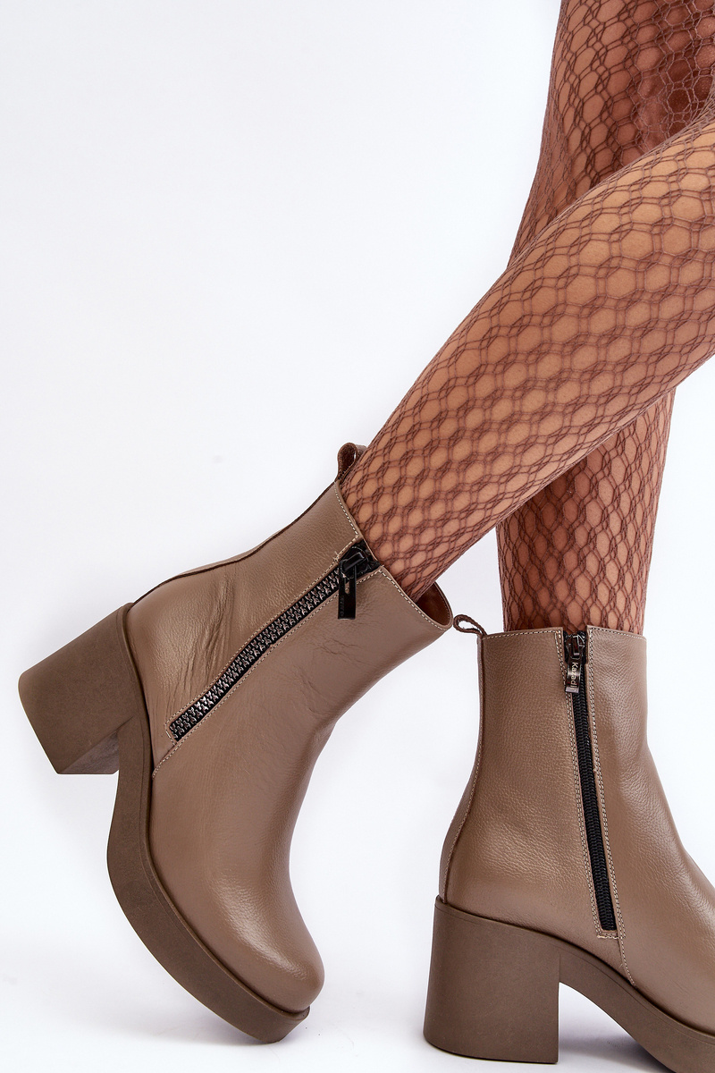 Leather Boots with Massive Heel and Zippers Dark Beige Lemar Littosa