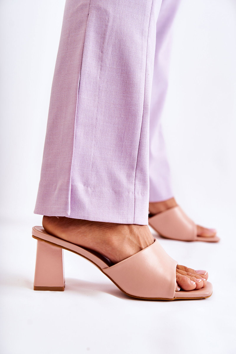 Unique high heels made entirely of eco leather. The soft insole will ensure comfort even throughout the day. A simple, classic pattern set on the average height of the block will work in many styles. Elegance and comfort in one! These slippers have an open, square toe. A great model that you should have in your wardrobe! When choosing a size, please use the size chart.