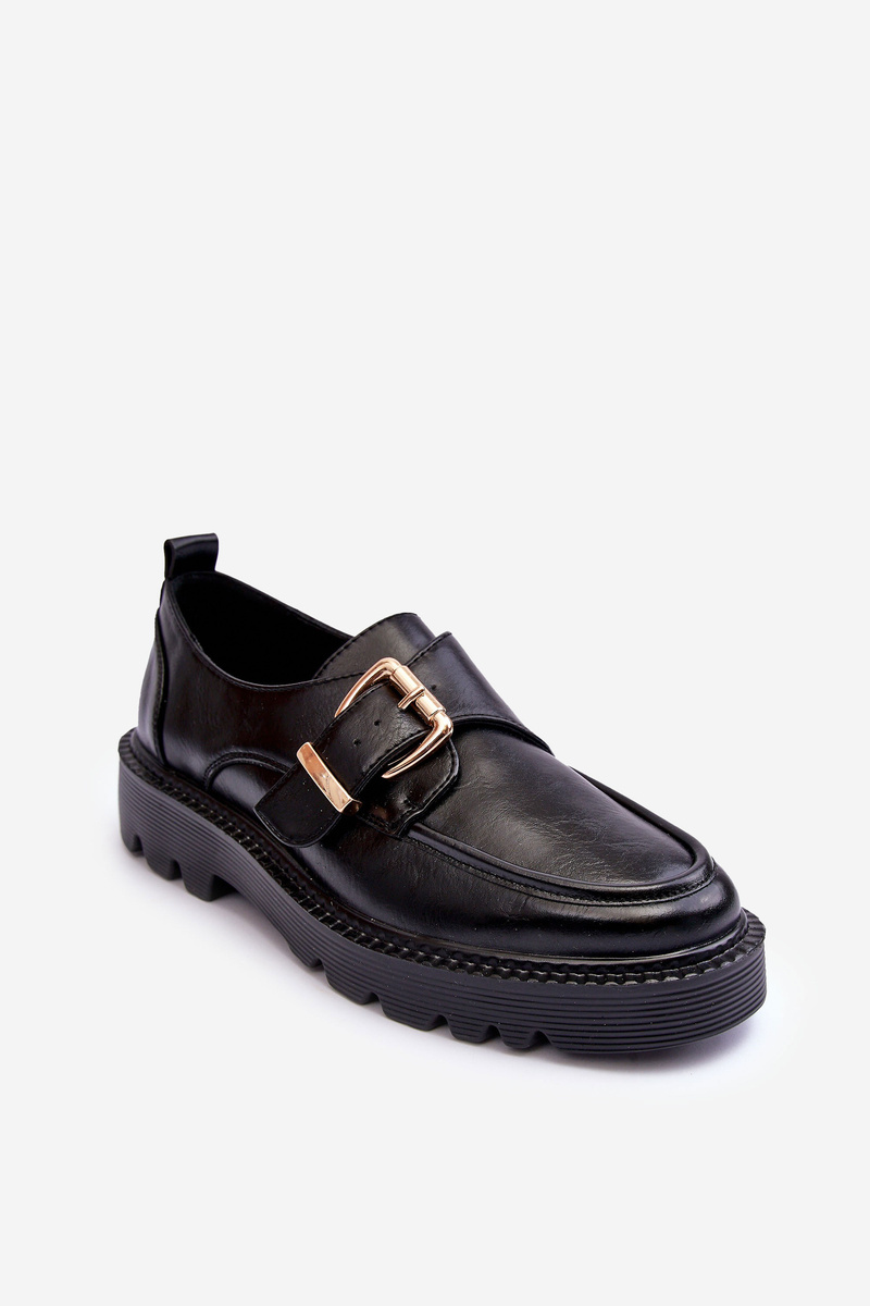 Elegant women's loafers made of eco leather. Set on a flat heel and platform. Toes rounded. The upper is decorated with a strap with a golden buckle. The toe is stiffened. Soft eco leather insole will provide comfortable use. These shoes will work in many stylizations! Be sure to check out our entire collection of loafers! When choosing a size, please refer to the size chart.