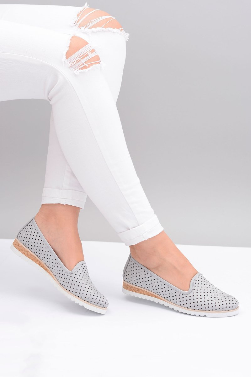 Leather Grey Polish Ballerina Lords Gabi