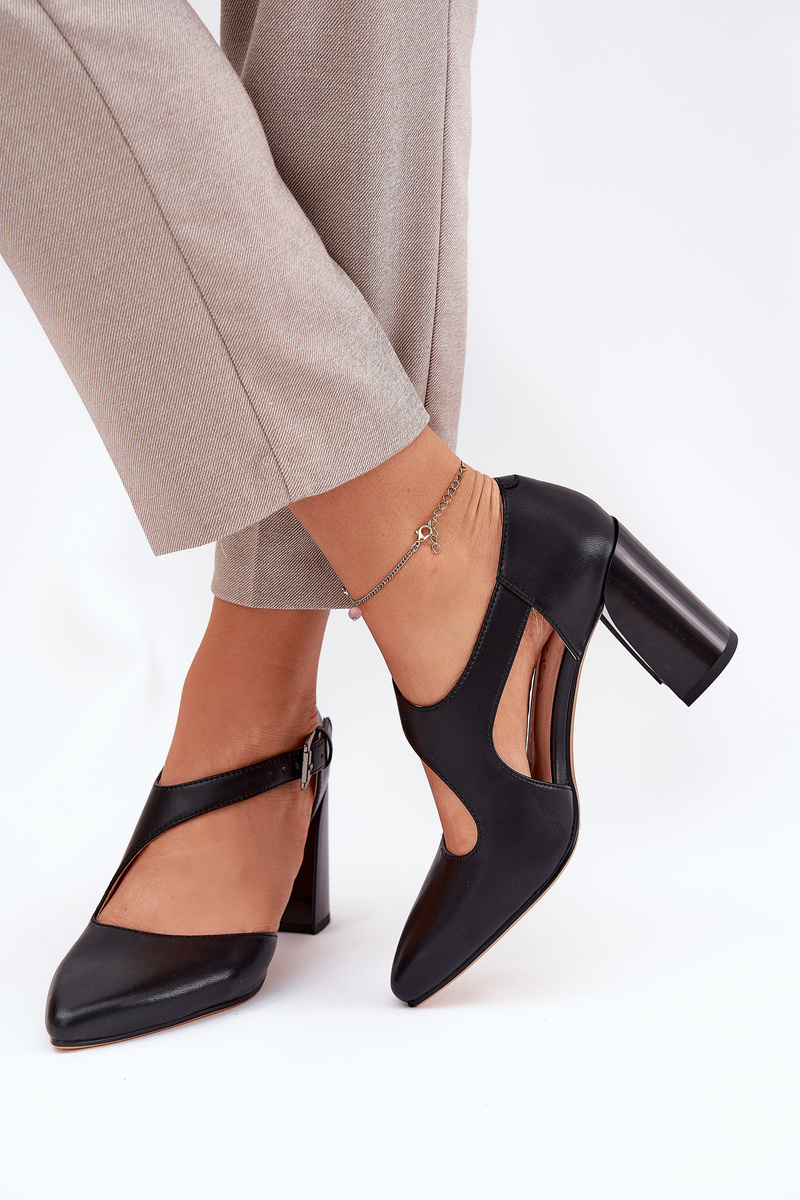 Pumps from the Vinceza brand. Made of natural leather, they combine elegance with modern style. Set on a block heel, they provide stability and comfort throughout the day. Almond-shaped toes add a subtle charm, while the leather insole guarantees comfort and appropriate cushioning. Fastened with a buckle and adjustable strap, allowing for a perfect fit to the foot. These stylish pumps will be an excellent choice for elegant outings, perfectly complementing dresses, skirts, or trousers. When choosing a size, please refer to the size chart.