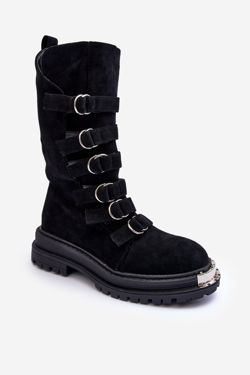 Women's ankle boots with a higher shaft were made of eco suede. Set on a platform and a flat heel. This model is fastened with a zip and additionally has lacing. The sole is made of rubber material. The interior is insulated with a shoe lining. The stiffened toe will provide proper foot stabilization. When choosing a size, please refer to the size chart.