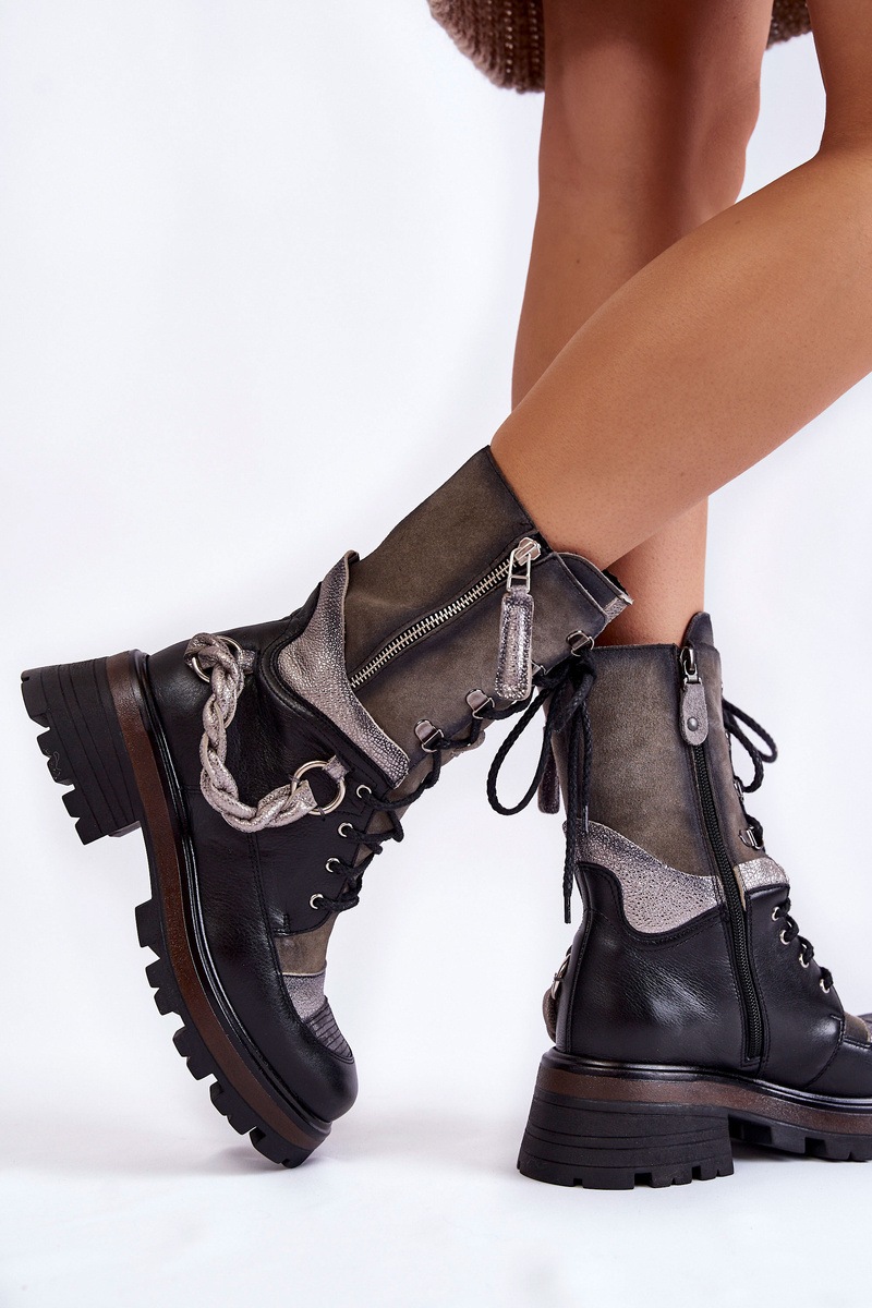 Leather High Boots Workers Maciejka 05586-01 Black and Grey