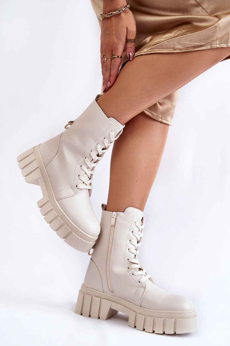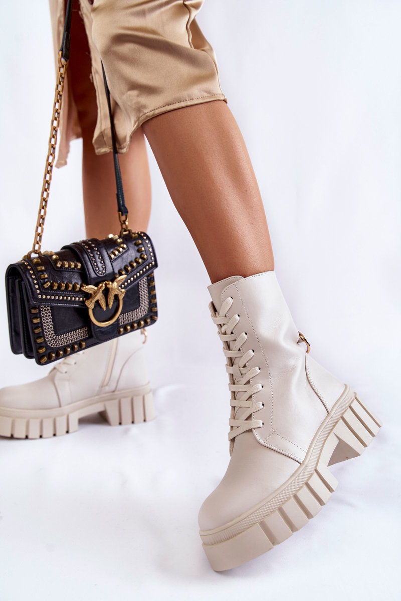 Leather, insulated boots on a platform light beige Telisa