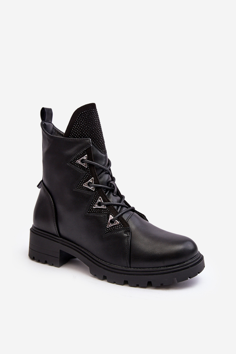 Leather Insulated Boots with Rhinestones Black Gwen SBarski HY93-52A
