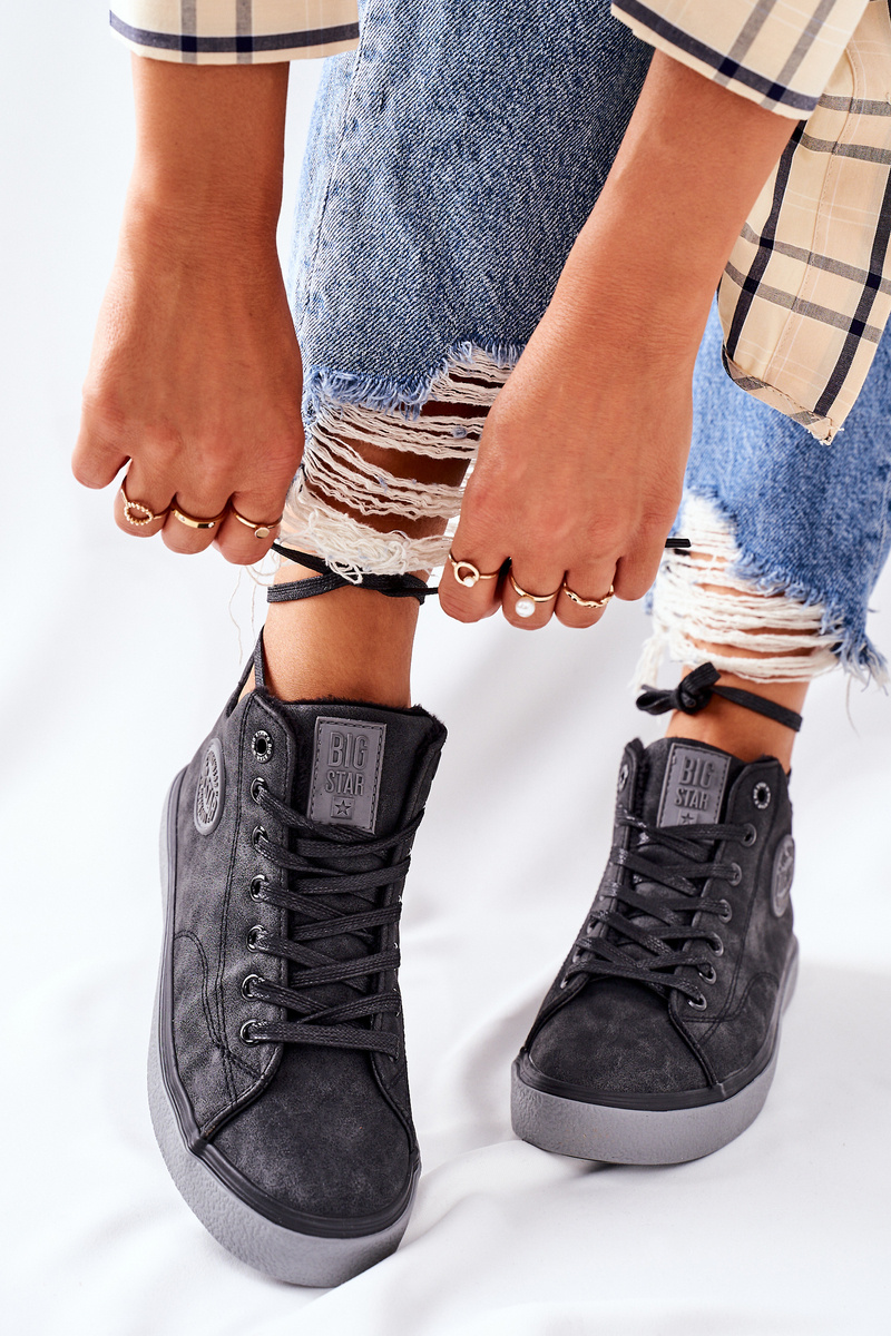 High BIG STAR sneakers have a delicate insulation in the form of ecological fur. Non-slip, solid sole is a guarantee of comfort. The shoes have a decorative emblem. Be sure to check out our BIG STAR collection! When choosing a size, please use the size chart.