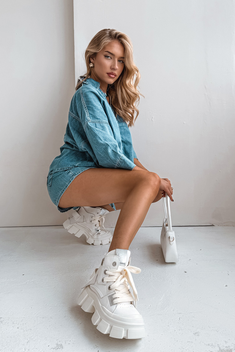 Women's sporty-style boots from GOE are an excellent choice for women who value comfort and fashionable appearance. Made from high-quality natural leather, they look stylish and are exceptionally durable. Set on a solid platform, they add character and provide wearing comfort. The model is laced, allowing perfect fitting to the foot, and the interior is lined with a shoe blanket, ensuring warmth on colder days. These boots are great for everyday casual outfits. Please refer to the size chart when choosing your size. When choosing a size, please refer to the size chart.