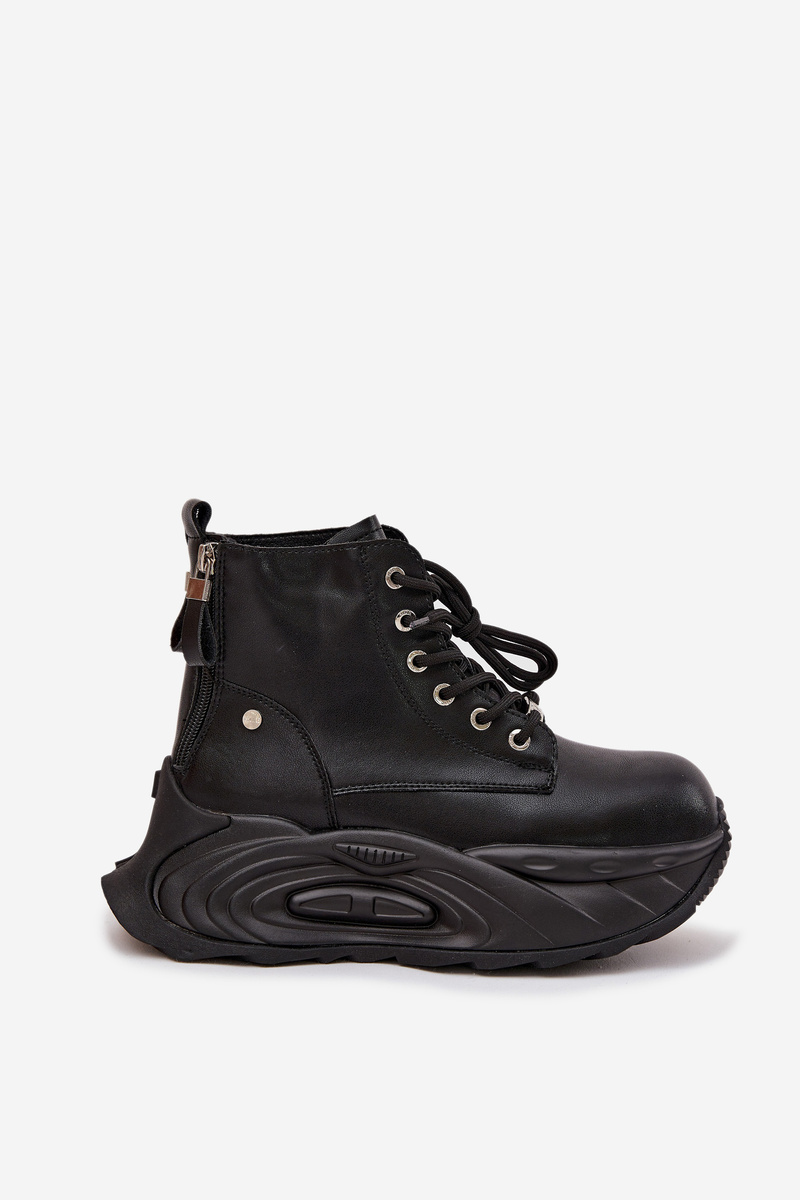 Leather Insulated Women's Platform Boots GOE SS2N4301 Black