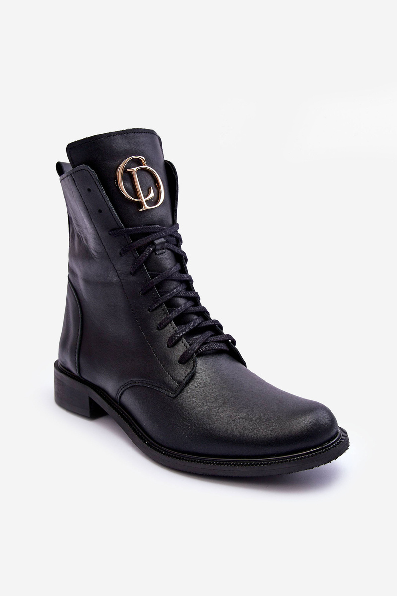 Leather Lace-Up Boots With Ornament Black Nicole 2750