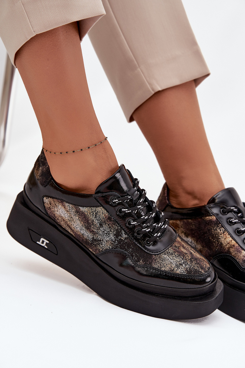 Leather Lace-up Women's Shoes on Platform Artiker 57C2042 Black-Gold