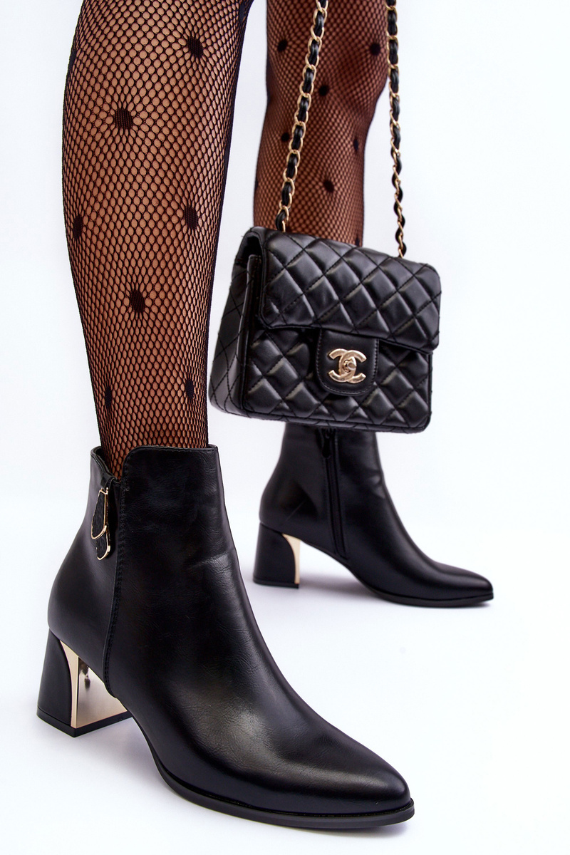 Women's boots set on a stiletto heel. Upper fastened with a zipper. Made of eco leather. Inside lined with shoe fur. Pointed toes, stiffened counter. Perfect for many autumn-winter looks! Be sure to check out the other boot models available in our offer. When choosing a size, please refer to the size chart.