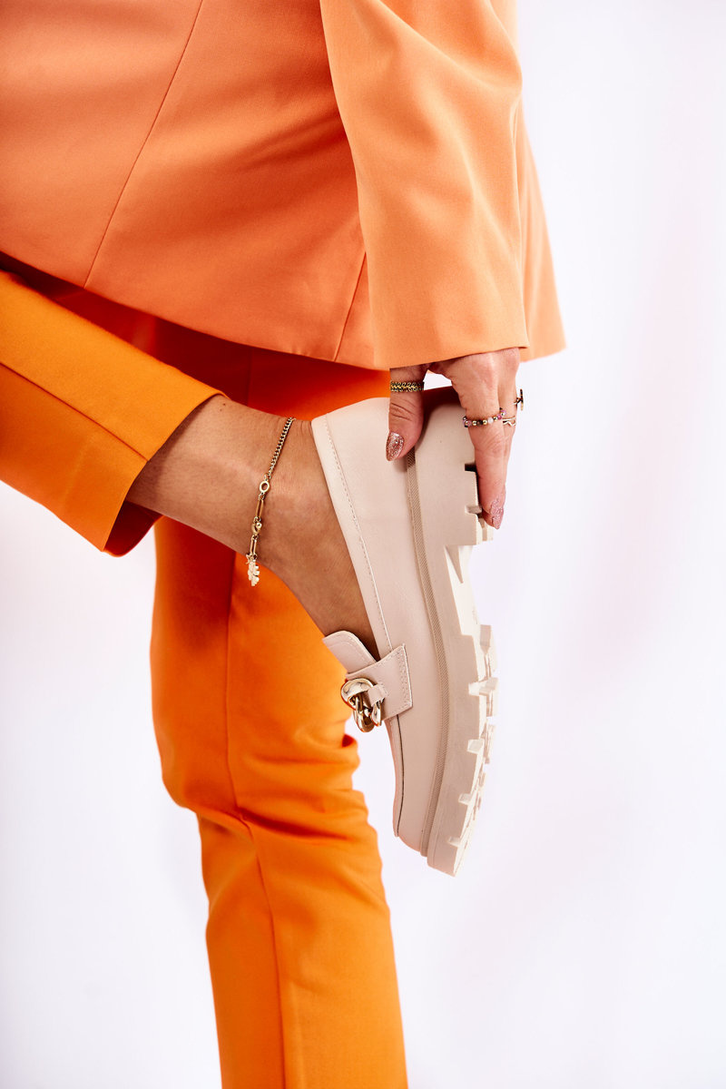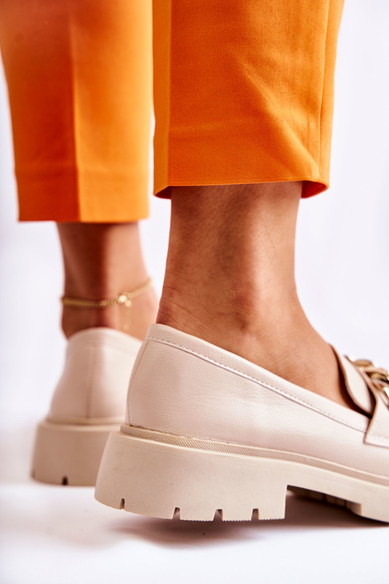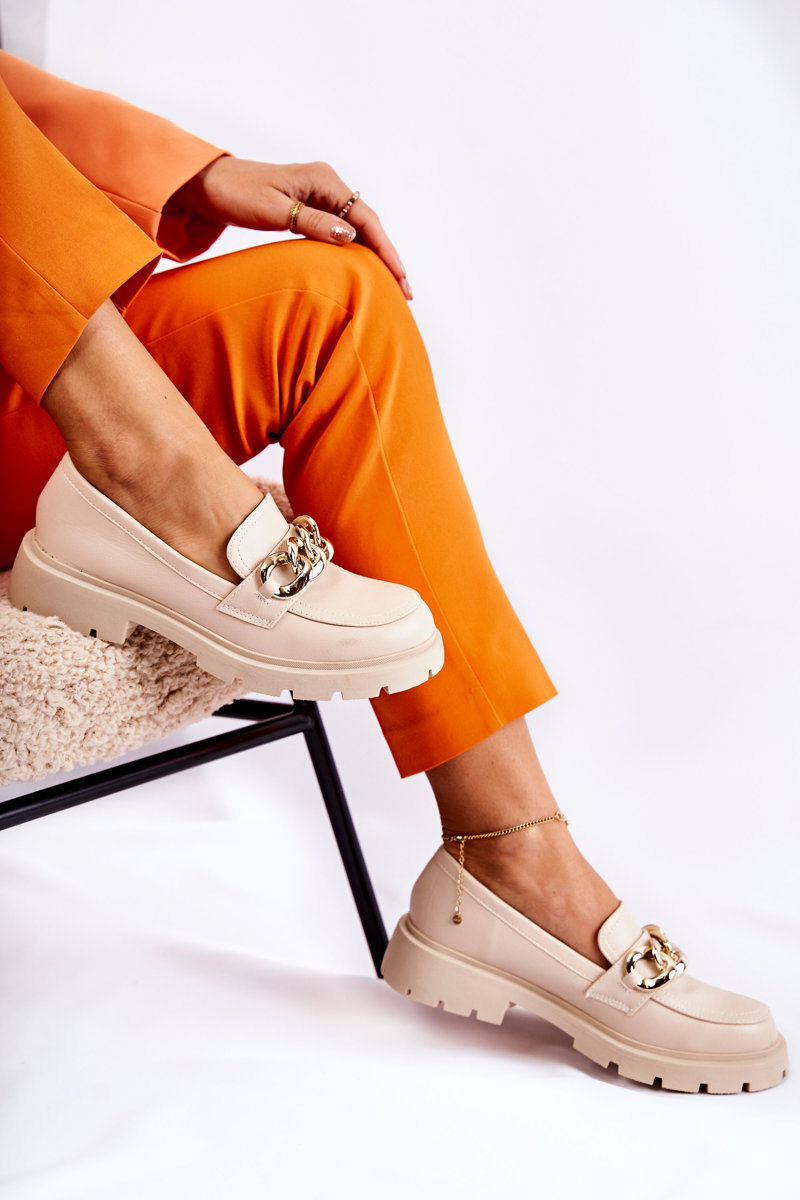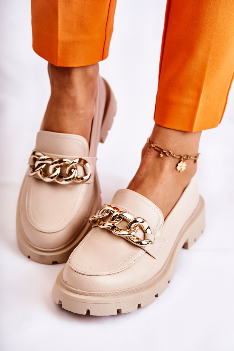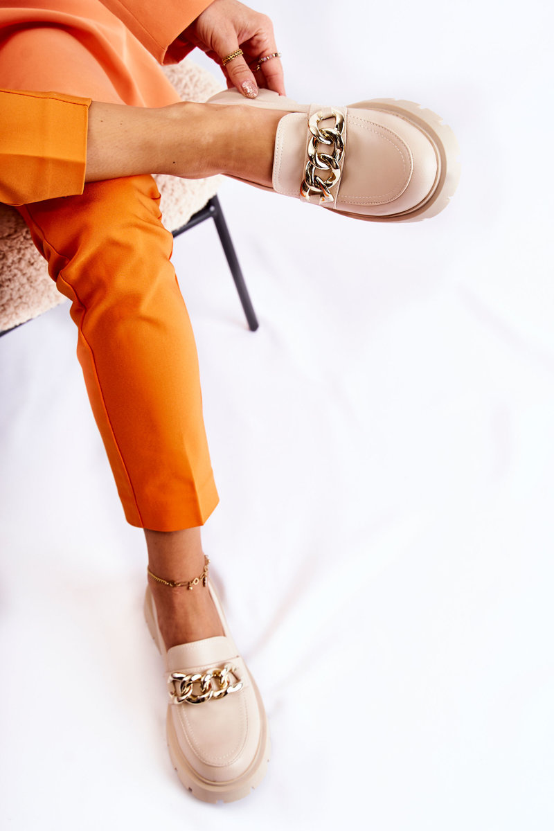 Great shoes in the style of beautiful loafers. The shoes are made of high-quality eco leather. The characteristic chain looks really wonderful. The shoes have a thicker sole and a heel that will lift our figure. A soft, eco-leather insole will ensure comfort while wearing. You absolutely should have them! When choosing a size, please use the size chart.