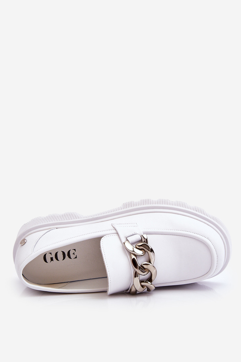 Beautiful, women's loafers are made of natural leather. This model has been decorated with a plastic chain. Loafers were placed on a flat heel and platform. The sole made of rubber material is non-slip. The insole in these moccasins is soft and comfortable during use. When choosing a size, please refer to the size chart.