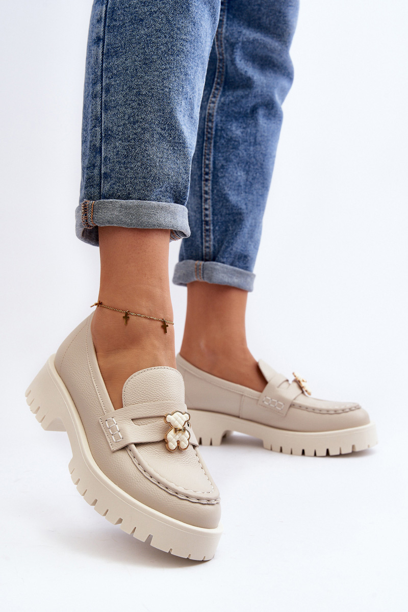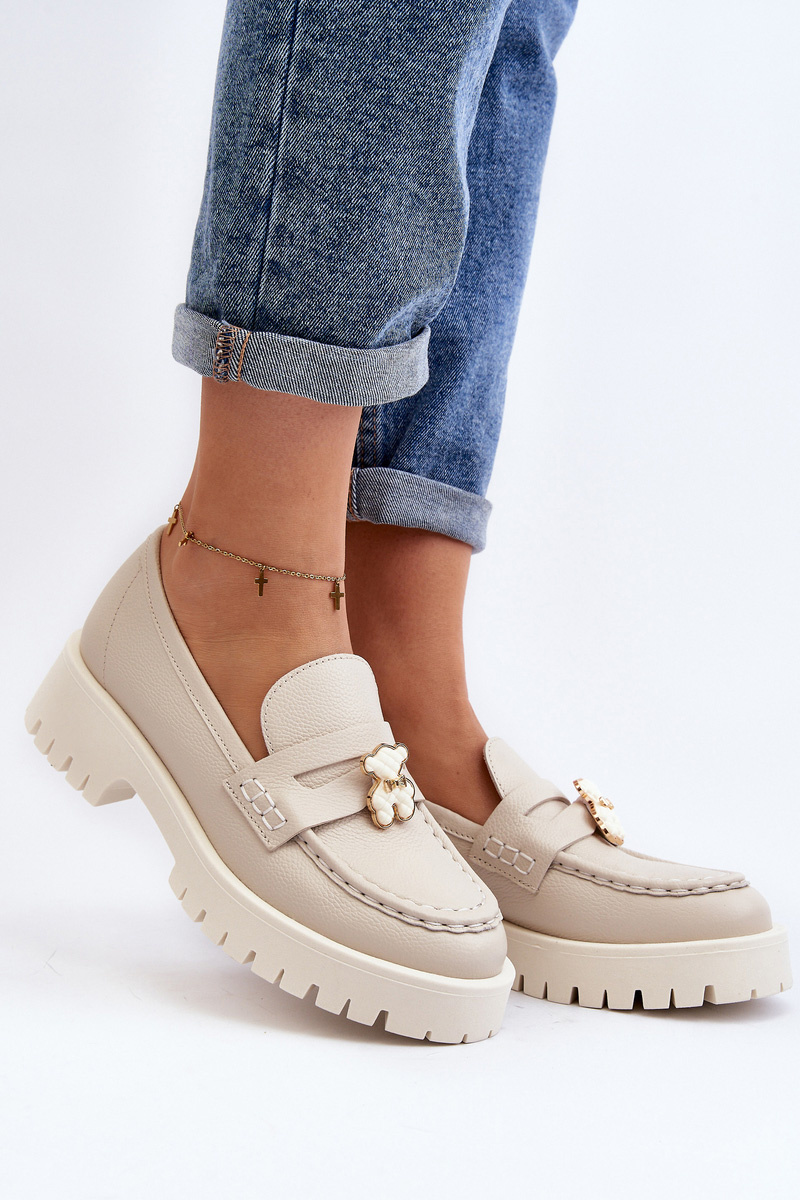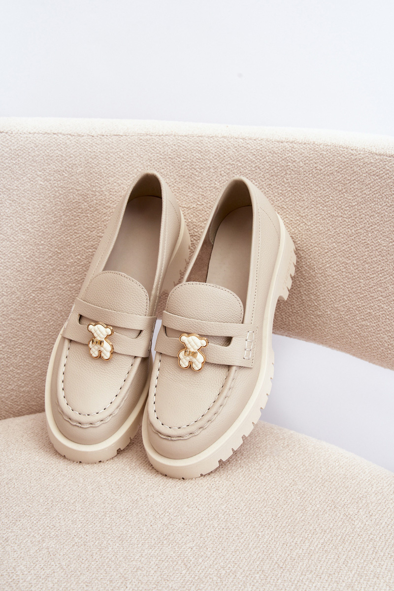 Leather Moccasins with Bear CheBello 4291 Light Beige