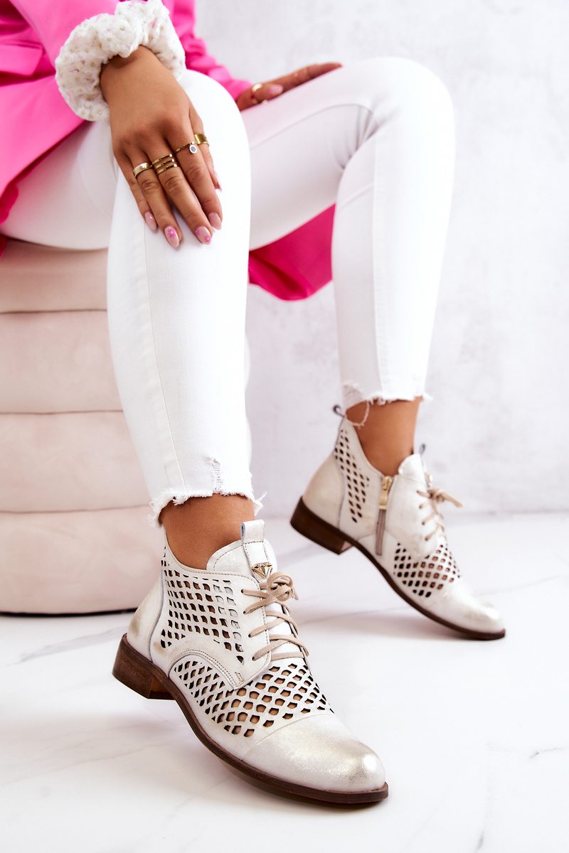 Leather Openwork Shoes Nicole 2704/004 White and Gold