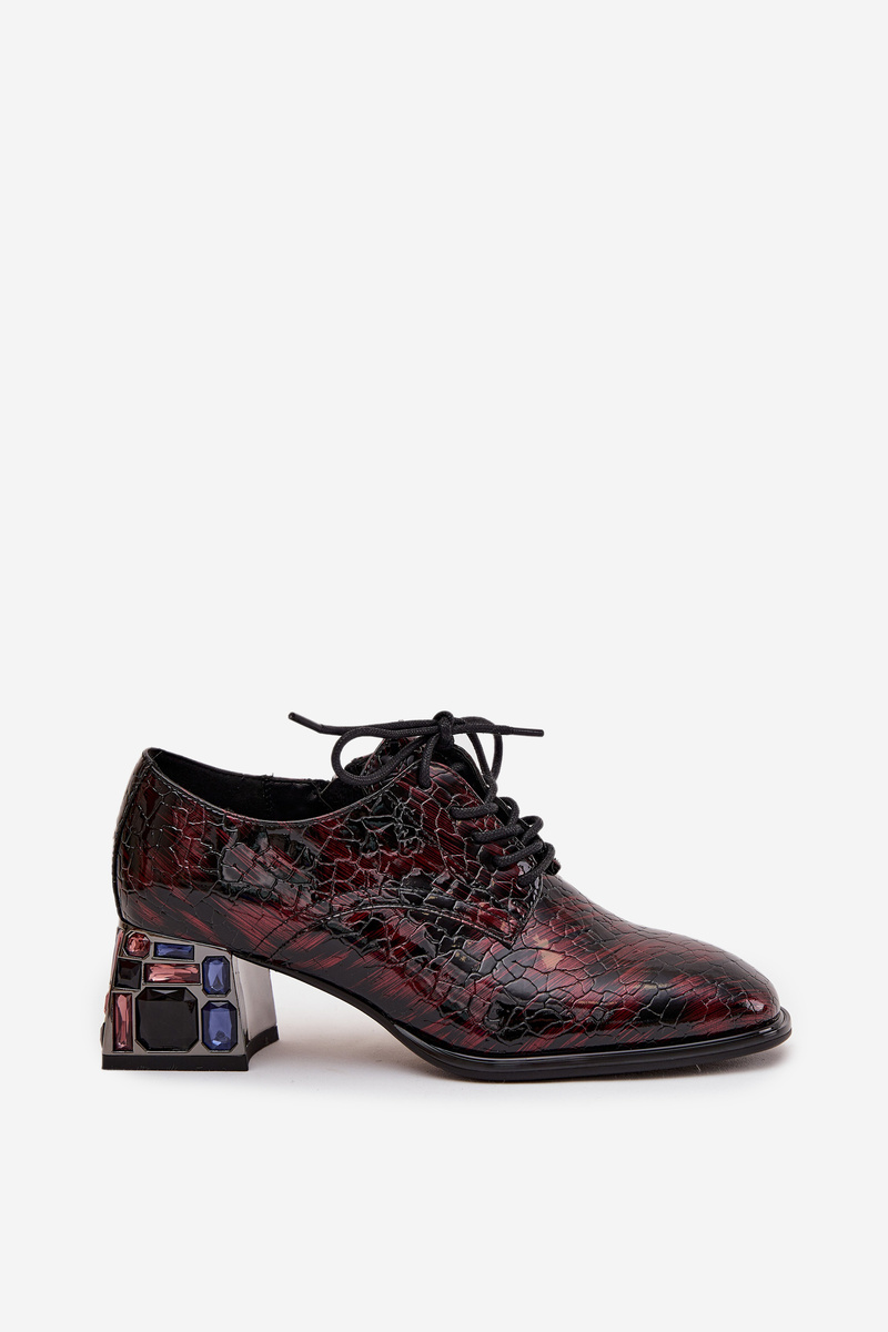 Leather Patent Ladies' Shoes with Heel with Crystals Artiker 57C0073 Burgundy