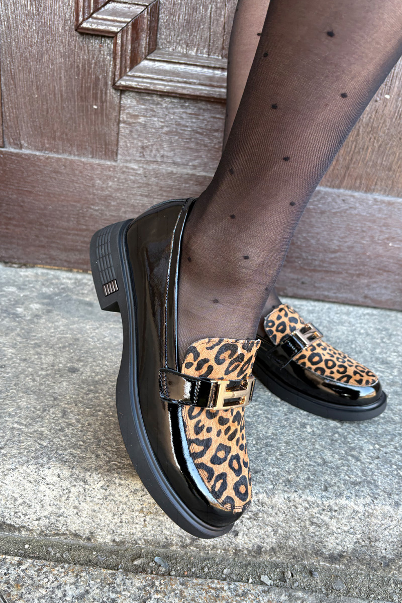 Leather Patent Loafers Leopard Vinceza 66790 Black