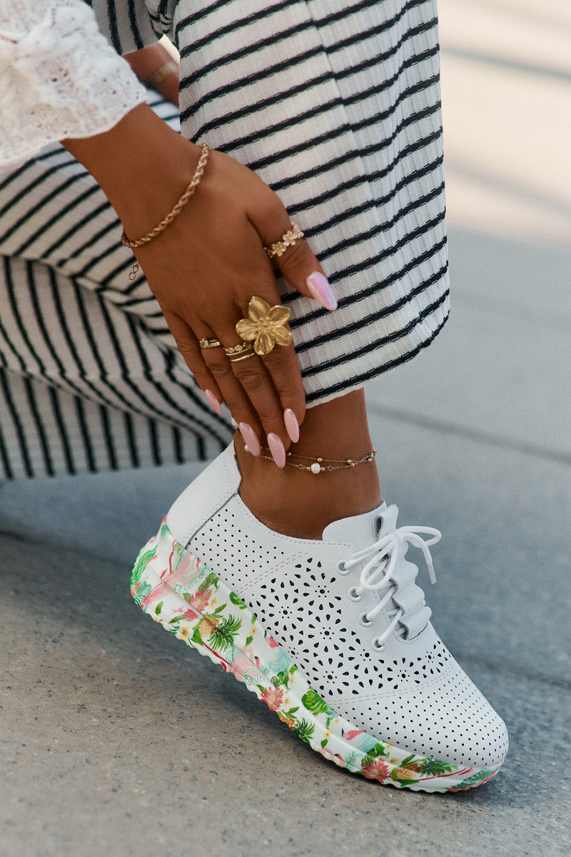 Lightweight leather perforated loafers for women are an excellent choice for those who appreciate elegance combined with comfort. Set on a platform and wedge, they provide lightness and stability throughout the day. Rounded toes ensure comfort, while lacing allows for a perfect fit. The leather insole cares for comfort and cushioning, making these loafers a great choice for both everyday and more elegant styles. The perforated upper gives them a subtle lightness, making them a unique accent in summer outfits. When choosing a size, please refer to the size chart.