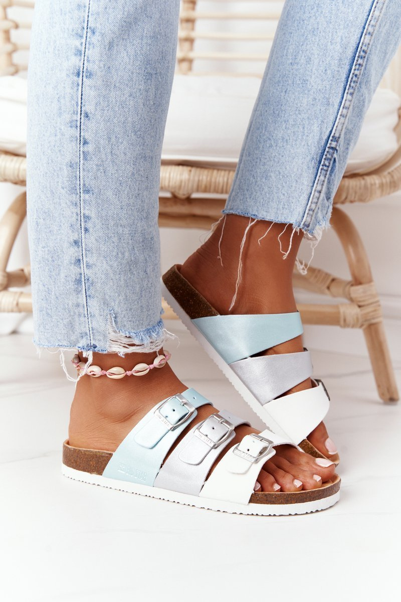 Leather Profiled Slippers Big Star HH274587 Turquoise-Silver