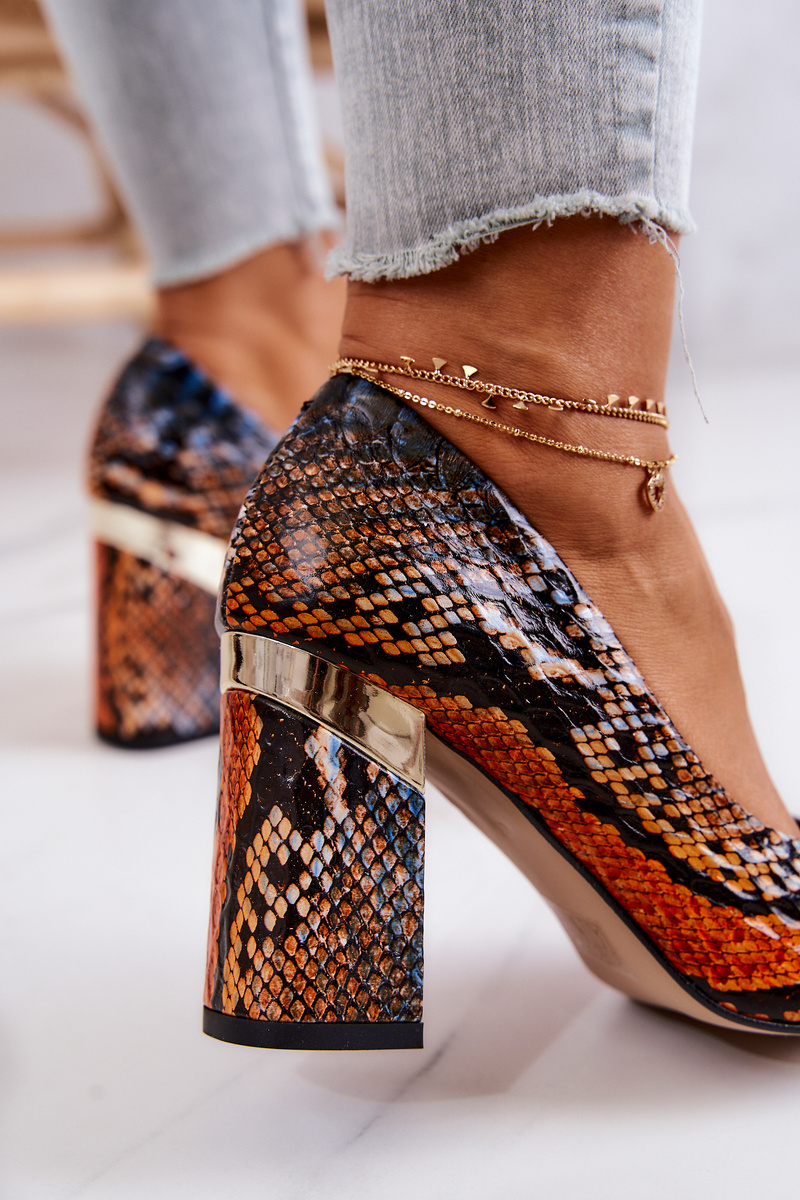 Leather pumps Lewski Snake 3117 Orange-Brown