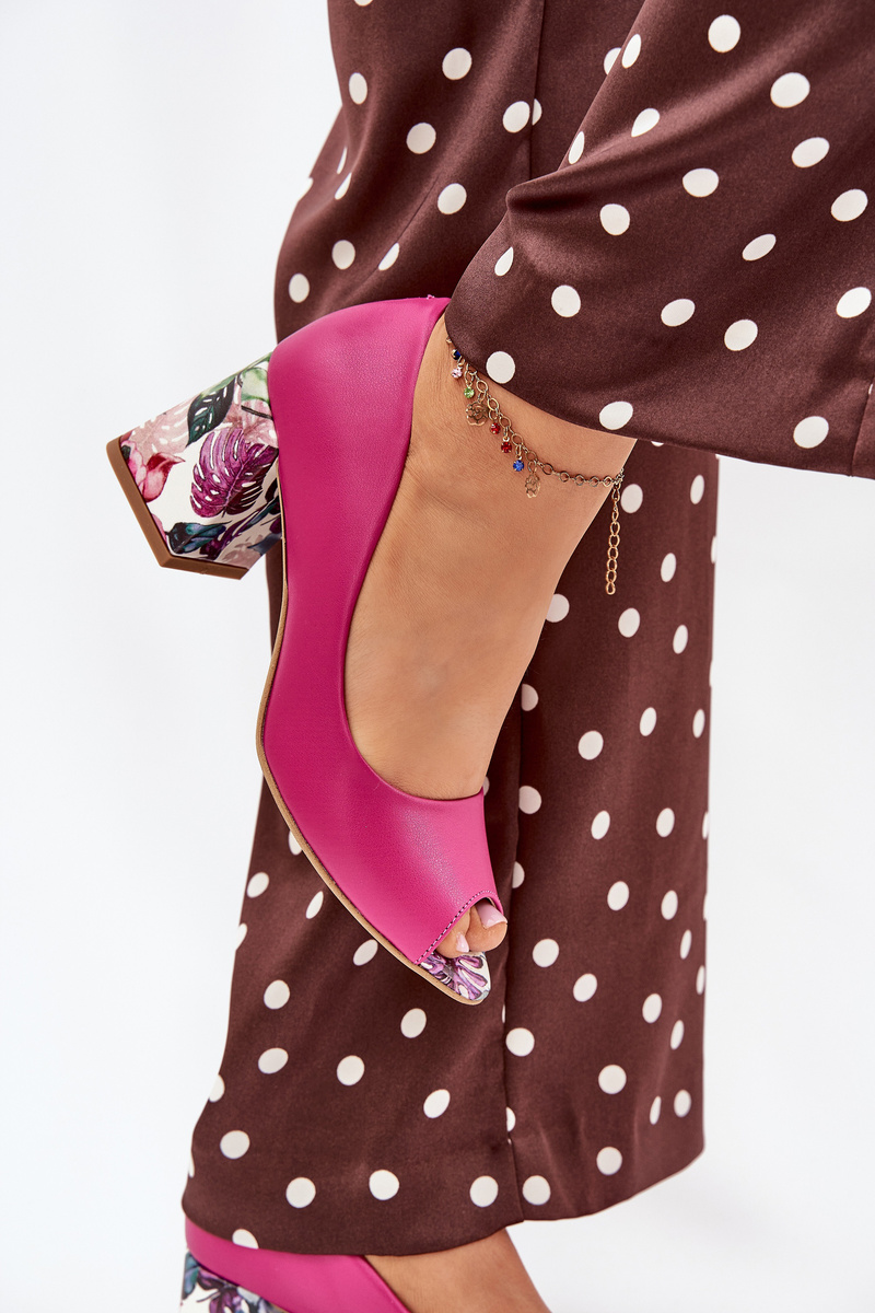 Leather pumps with decorative heel Fuchsia Lewski Shoes 2608/K