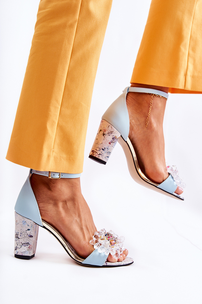 Leather Sandals On A Bar With Crystals Blue Velinda