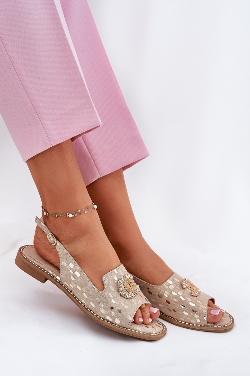 Leather Sandals With Decoration On Flat Heel S.Barski KV51-096 Gold