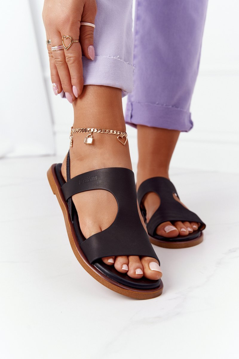 Leather Sandals With Drawstring Big Star HH274715 Black