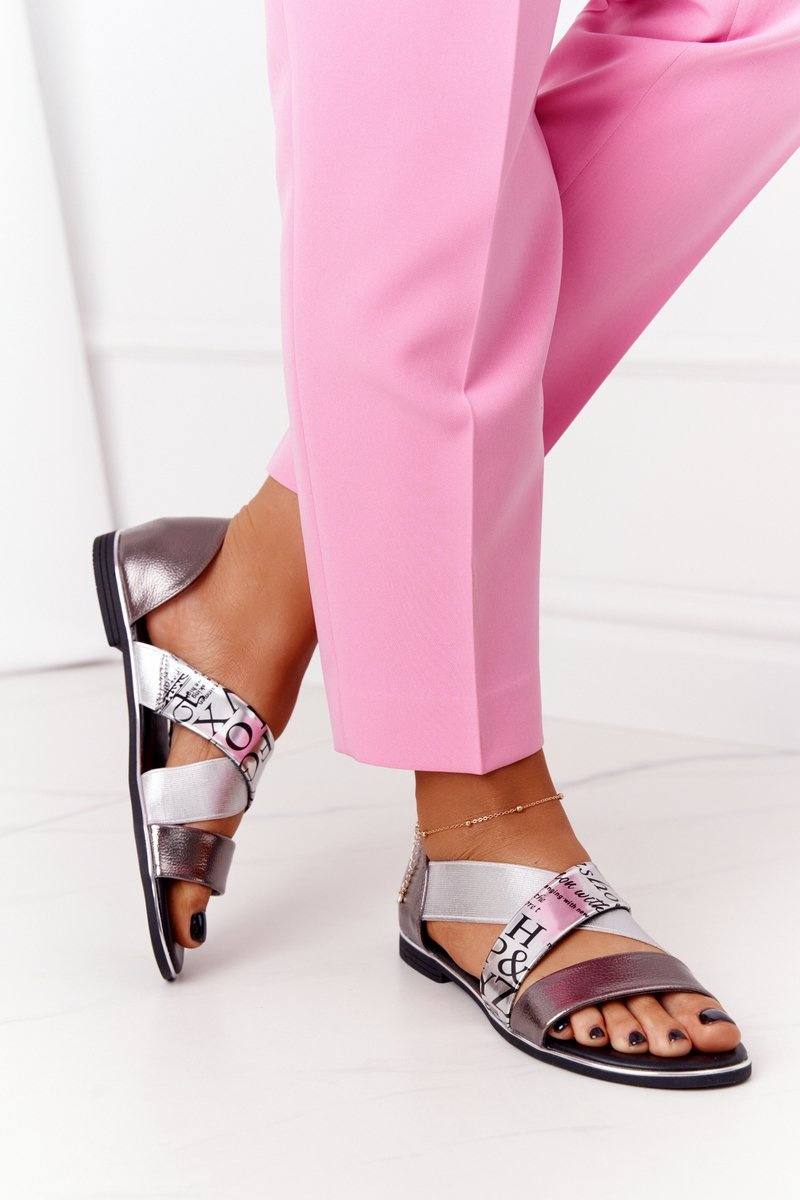 Leather Sandals With Drawstrings Silver Apulia