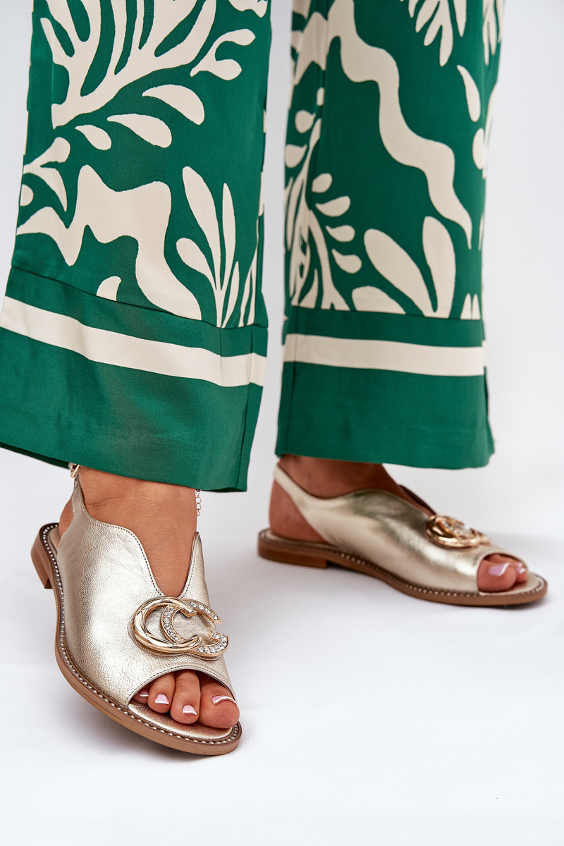 Leather Sandals With Flat Heel And Decoration Laura Messi 2865 Gold