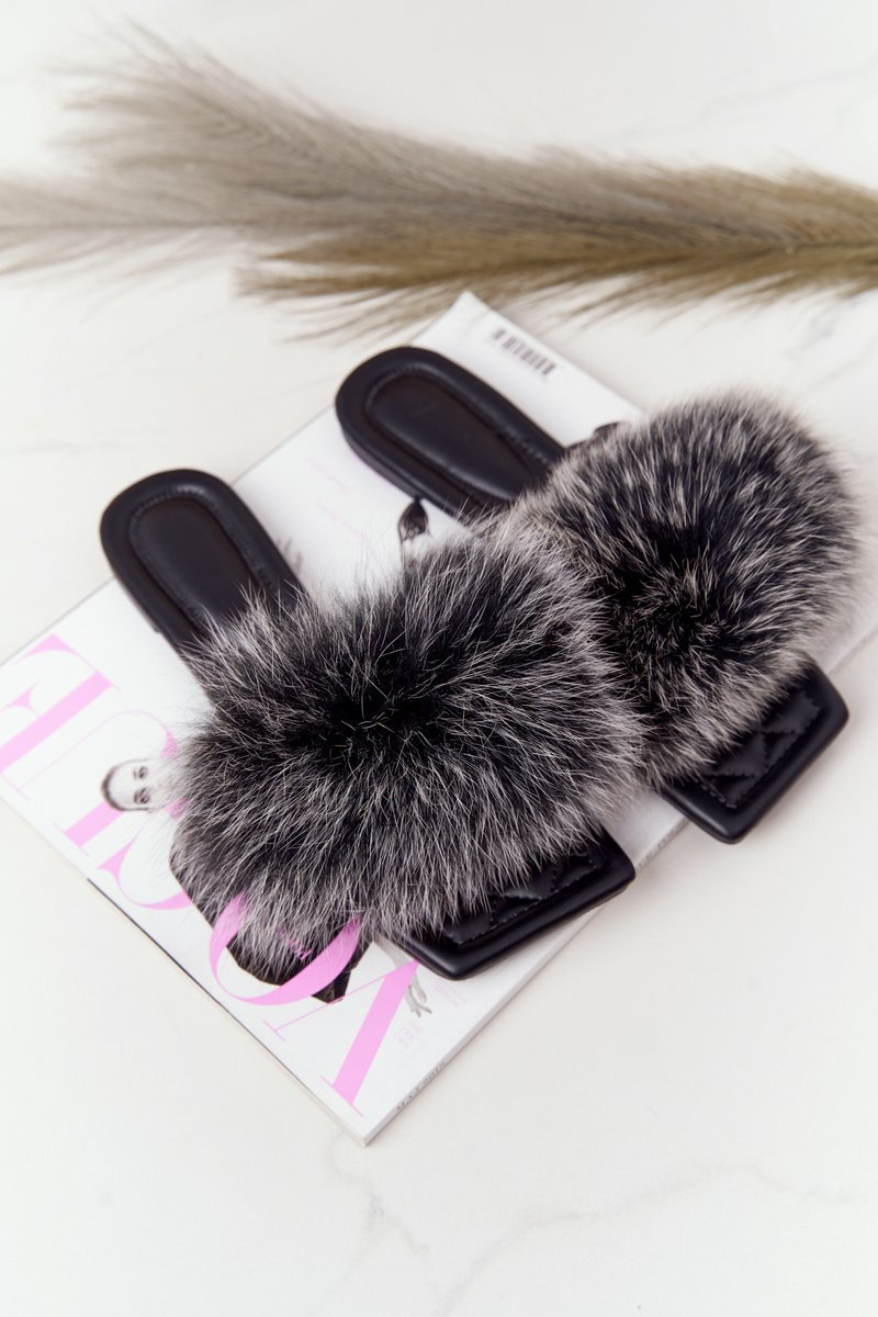 Elegant women's slippers with eco fur. The slippers have a soft eco-leather insole and a non-slip sole. They will complete many summer stylizations! Be sure to check out our entire collection of women's slippers. When choosing a size, please use the size chart.